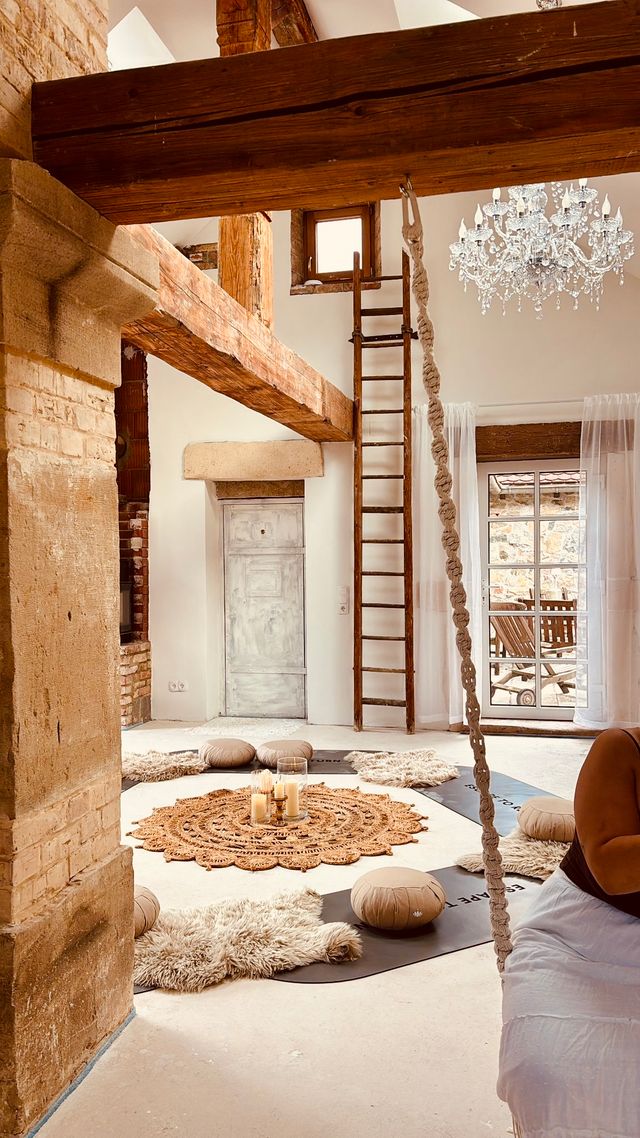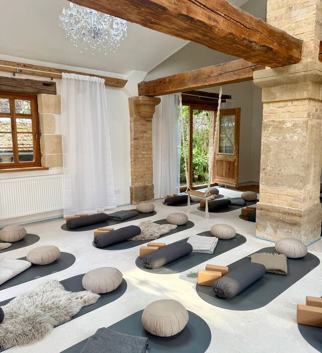 Abseits der Yogamatte findest du Raum für dich selbst: zum Durchatmen, Abschalten und einfach Sein. Genieße die Stille bei einer Tasse Tee im Kaminzimmer, lass dich von der wohligen Wärme der Sauna oder des Hot Tubs umhüllen oder spaziere durch die herbstlich leuchtenden Weinberge am Fuße des Odenwaldes. Und manchmal ist es einfach das süße Nichtstun – du entscheidest, was dir guttut.